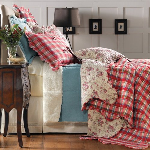 Available exclusively at LinenSource This quilt offers true versatility, a reversible pairing of cottage plaid and feminine floral. Unique edging displays a scallop within a scallop, which is repeated on the shams and accent pillow. Hand-quilted of 100 cotton with a vintage look and a smooth feel. Machine-washable. Imported.